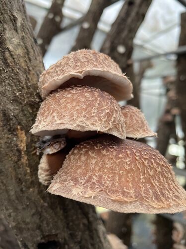 この前にブログ記事にした三重県伊賀市に行ったときのお話です。 皆さん、これ何だと思いますか?? タイトルにありますが、原木椎茸です。 かなり近くで撮影したらこの迫力、この肉厚感。 これを原木からもぎって塩で焼いて食す。 香り最高です。 椎茸、肉…